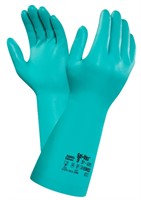 Solvex Plus 37-695 är det idealiska valet för säker hantering i många olika arbetsmiljöer där det förekommer skarpa kemikalier. Handskfoder av bomullsflock ger tillsammans med nitrilfilmens flexibilitet utomordentlig komfort för användaren. Omvänd lozenge-finish förbättrar greppet ytterligare. Sandpatch-ytan ger handsken en jämn yta som minskar de indirekta kostnaderna tack vare färre kassationer vid hantering av ömtåliga detaljer. Sol-Vex® 37-695 är längre (38 cm) än standardmodellen och ger ökat skydd för handleden och nedre delen av underarmen.