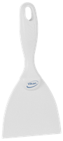 Denna smala handskrapa är utformad för rengöring av små utrymmen och rundad utrustning, som exempelvis stora skålar, och den är perfekt för att lossa envis smuts, inklusive deg, choklad och fastbrända livsmedel. Bladet är vasst på båda sidor för extra lång livslängd. Skrapan är tillverkad av metalldetekterbart material, vilket kan testas före användning med Vikans testset, produktnummer 11113.