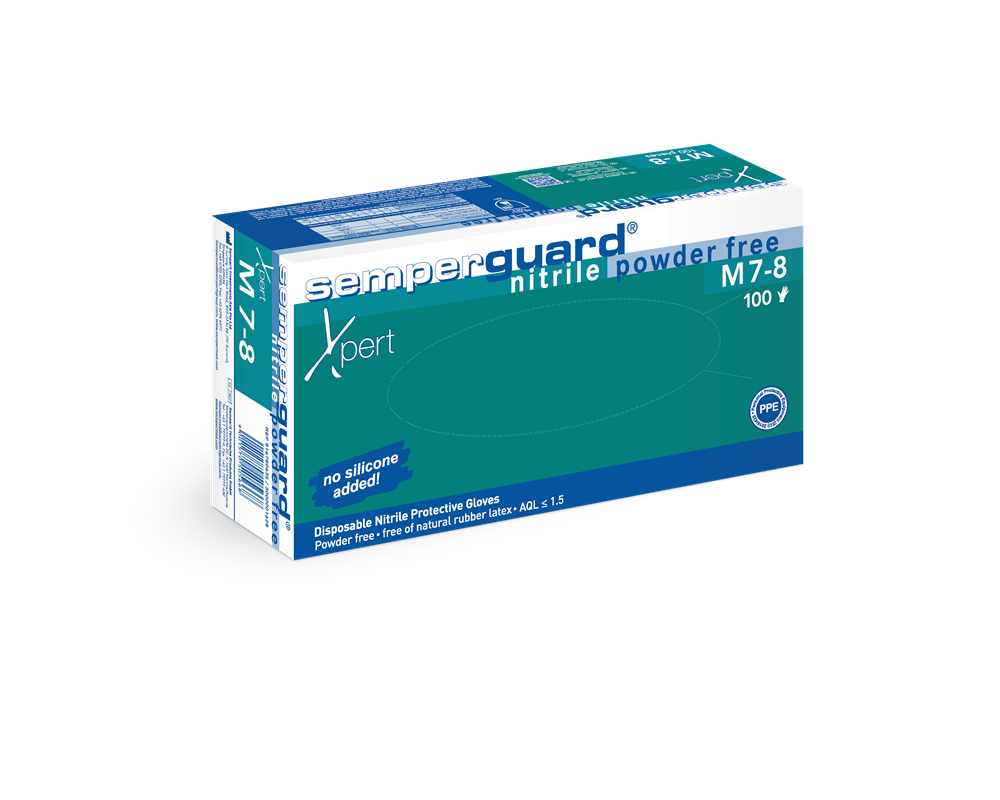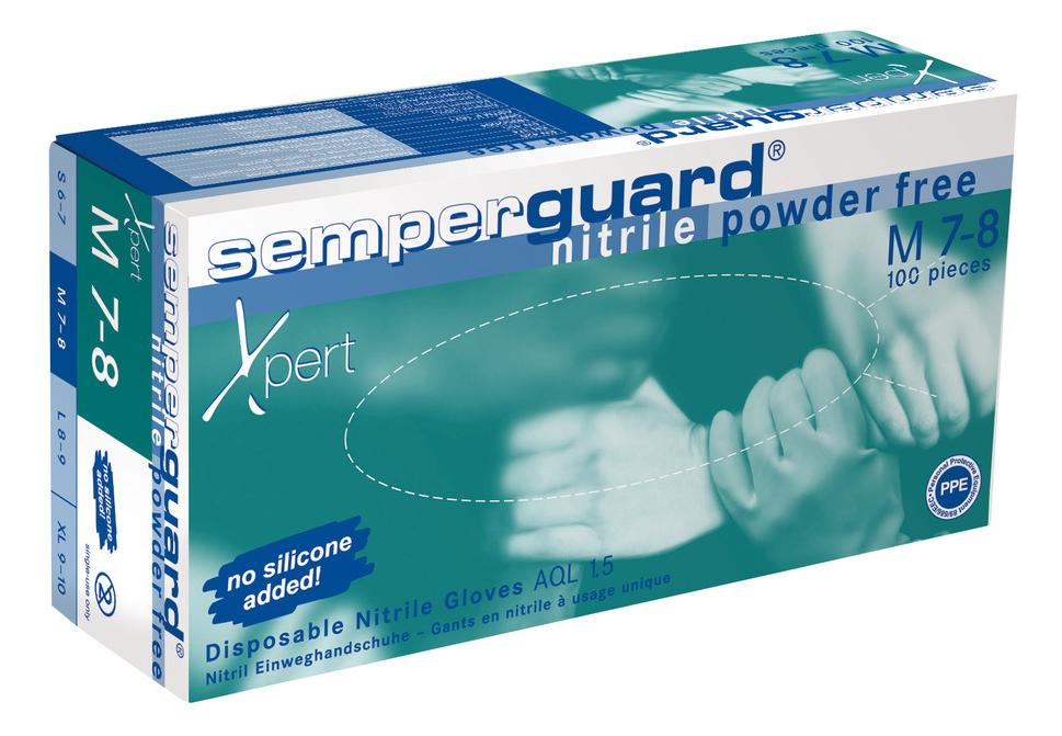 Semperguard Nitril Xpert är en puderfri, extra slitstark engångshandske av nitrilgummi med bra fingertoppskänsla och god kemikaliebeständighet. Handsken är blå och är fullt godkänd för alla typer av livsmedel.