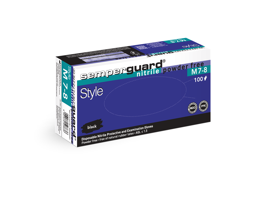 Med sin eleganta svarta färg lever Semperguard® Nitrile-Style upp till sitt namn och kombinerar inte bara estetik och stil, utan speglar också professionalism. Den svarta engångsskyddshandsken gjord av nitrilbutadiengummi är särskilt populär i front-end-applikationer inom mat och dryck, skönhet och kroppskonst. Dubbelmärkt som personlig skyddsutrustning och medicinsk utrustning