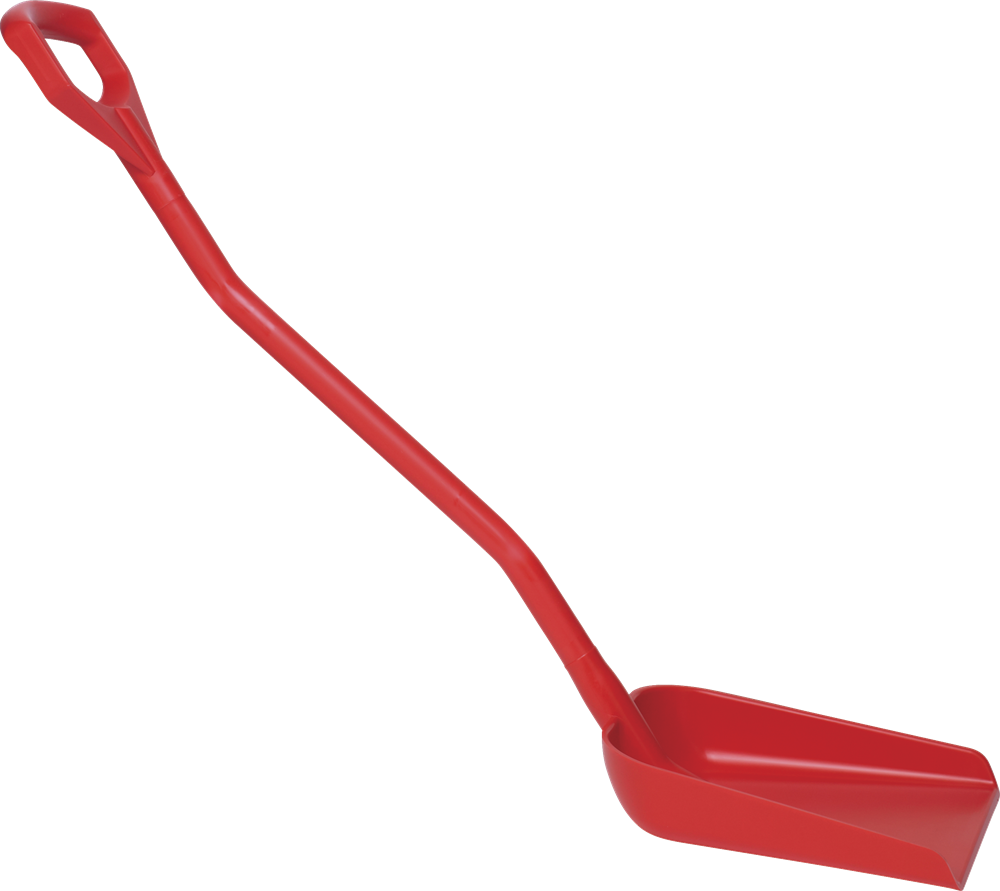 Ergonomisk stabil skyffel med kort skaft och litet blad. Anpassad för livsmedelindustrin.
