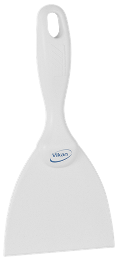 Denna smala handskrapa är utformad för rengöring av små utrymmen och rundad utrustning, som exempelvis stora skålar, och den är perfekt för att lossa envis smuts, inklusive deg, choklad och fastbrända livsmedel. Bladet är vasst på båda sidor för extra lång livslängd. Skrapan är tillverkad av metalldetekterbart material, vilket kan testas före användning med Vikans testset, produktnummer 11113.